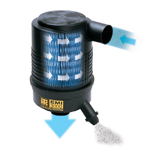 - Patented build in cyclonic sparator that filters heavier particles which get automatically discharged through the evacuation valve, preventing 75% of particles from reaching media