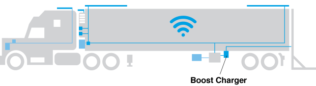 - Utilizes power from tractor alternator to smart charge lift gate batteries.